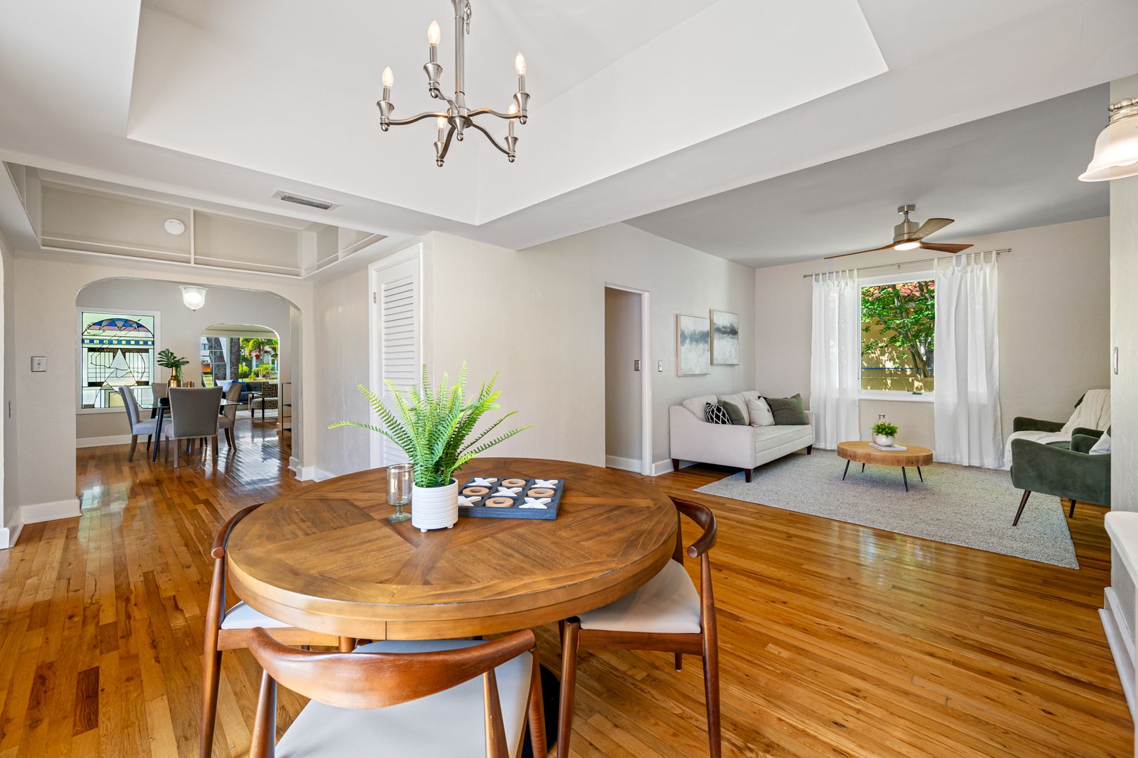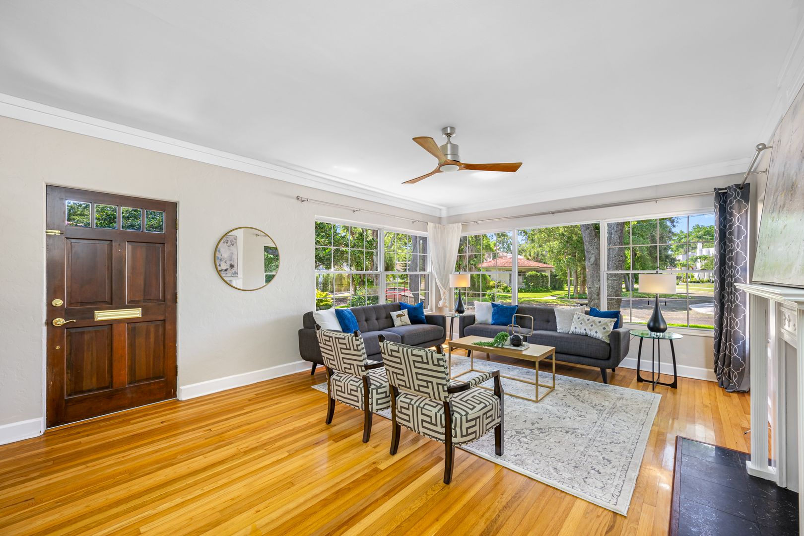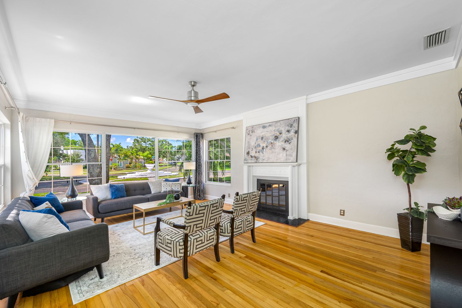 Discover the allure of this enchanting residence situated in the heart of Historic Granada Terrace in the sought-after Old Northeast neighborhood. Nestled on a meticulously landscaped lot, this block home exudes pride of ownership with its impeccably maintained exterior and interior spaces. Spanning approximately 2,300 square feet, this property boasts three bedrooms, three full bathrooms, a one-car garage with a parking pad, alley access, Anderson windows, a tankless water heater, ample storage space, and much more. Upon approaching the home, you'll be greeted by its charming curb appeal and a delightful brick walkway leading to the front entrance. Stepping inside, you'll immediately notice the beautifully preserved original oak flooring, creating a warm and inviting ambiance. The living room showcases many windows that offer captivating views of one of Granada Terrace's picturesque park circles, with glimpses of the waterfront in the distance. Located at the rear of the house, the separate family room provides an ideal space for entertaining guests. The gourmet kitchen is a true chef's dream, featuring an eat-in area, a movable granite island, a wet bar, granite countertops, and a high-end appliance package that includes a Dacor oven, Thermador gas top stove with a griddle and grill, Bosch dishwasher, and a Sub Zero refrigerator. The backyard showcases lovely yet low-maintenance landscaping, a custom outdoor shower, and a wood deck that is perfect for hosting gatherings with family and friends. Additionally, this property is just steps away from the Coffee Pot waterfront, providing easy access to outdoor recreational activities. Conveniently located near vibrant Downtown St. Petersburg, shops, dining establishments, museums, the St. Pete Pier, Renaissance Vinoy Resort, and much more, this home offers a desirable lifestyle with endless entertainment options. Don't miss the opportunity to make this charming residence your home.