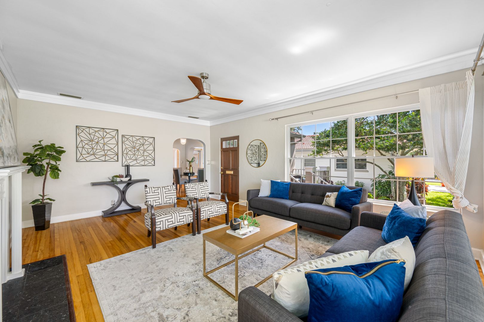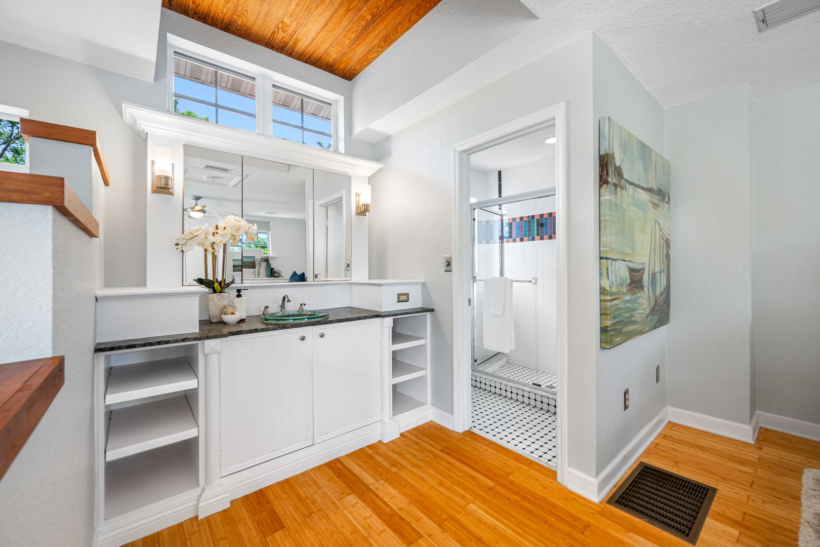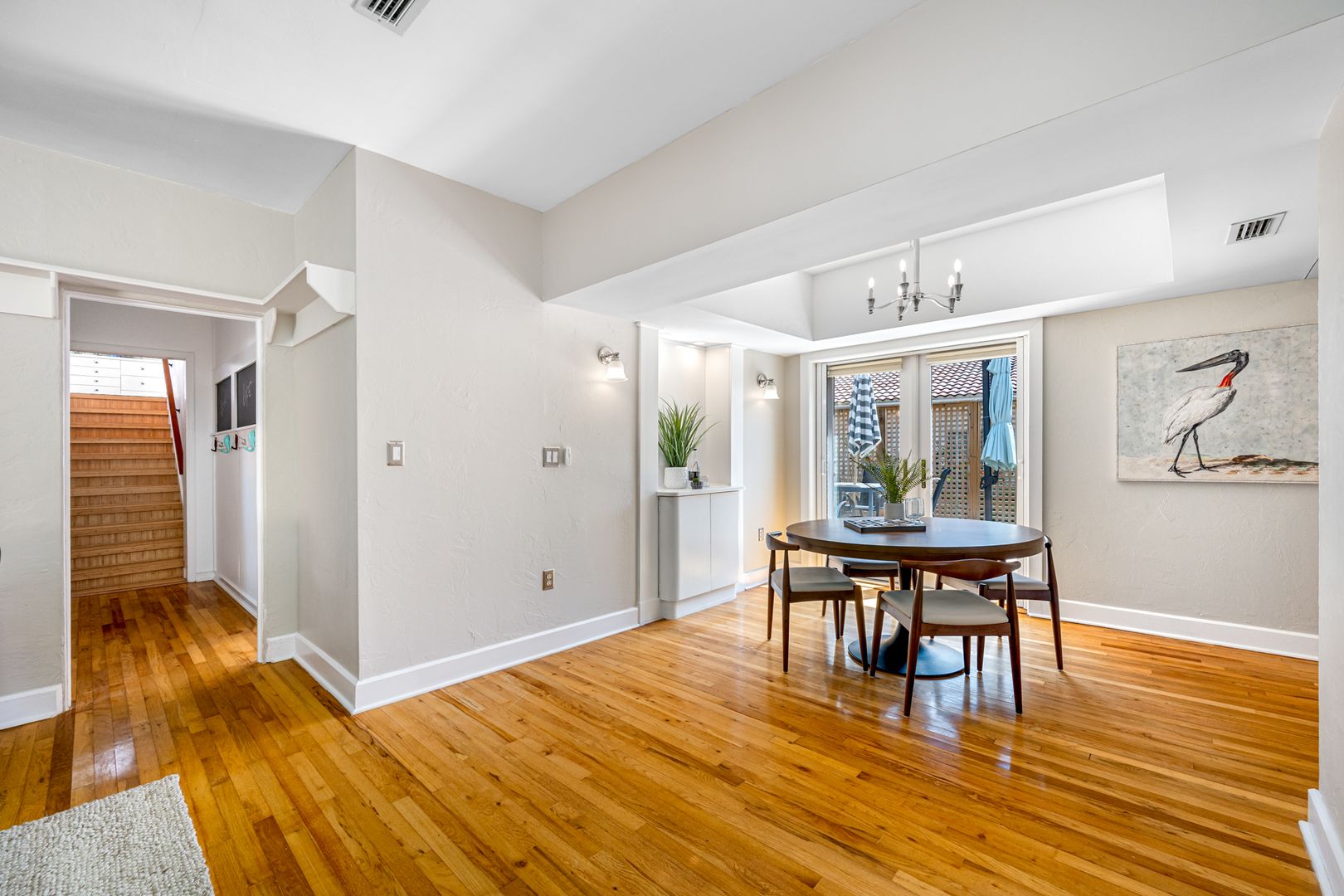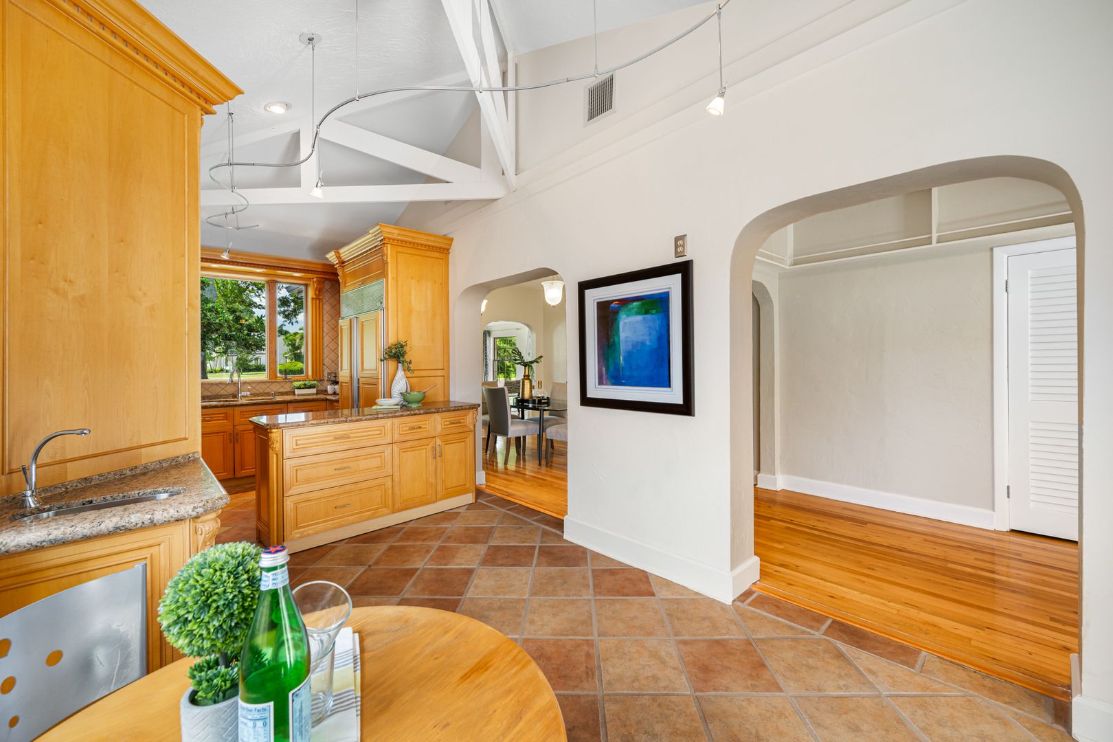 Discover the allure of this enchanting residence situated in the heart of Historic Granada Terrace in the sought-after Old Northeast neighborhood. Nestled on a meticulously landscaped lot, this block home exudes pride of ownership with its impeccably maintained exterior and interior spaces. Spanning approximately 2,300 square feet, this property boasts three bedrooms, three full bathrooms, a one-car garage with a parking pad, alley access, Anderson windows, a tankless water heater, ample storage space, and much more. Upon approaching the home, you'll be greeted by its charming curb appeal and a delightful brick walkway leading to the front entrance. Stepping inside, you'll immediately notice the beautifully preserved original oak flooring, creating a warm and inviting ambiance. The living room showcases many windows that offer captivating views of one of Granada Terrace's picturesque park circles, with glimpses of the waterfront in the distance. Located at the rear of the house, the separate family room provides an ideal space for entertaining guests. The gourmet kitchen is a true chef's dream, featuring an eat-in area, a movable granite island, a wet bar, granite countertops, and a high-end appliance package that includes a Dacor oven, Thermador gas top stove with a griddle and grill, Bosch dishwasher, and a Sub Zero refrigerator. The backyard showcases lovely yet low-maintenance landscaping, a custom outdoor shower, and a wood deck that is perfect for hosting gatherings with family and friends. Additionally, this property is just steps away from the Coffee Pot waterfront, providing easy access to outdoor recreational activities. Conveniently located near vibrant Downtown St. Petersburg, shops, dining establishments, museums, the St. Pete Pier, Renaissance Vinoy Resort, and much more, this home offers a desirable lifestyle with endless entertainment options. Don't miss the opportunity to make this charming residence your home.